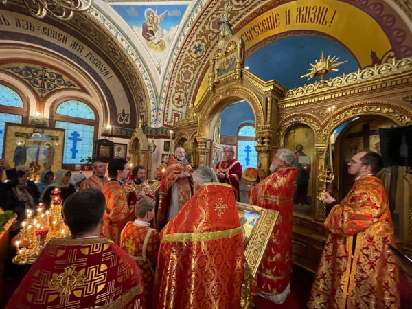 Архипастырю сослужили благочинный Восточного округа протоиерей Георгий Антонюк, настоятель храма протоиерей Сергий Силаганов, протоиерей Андрей Сикоев (Русская Зарубежная Церковь), иерей Александр Вассил, иерей Евгений Мурзин, протодиакон Виталий Садаков.