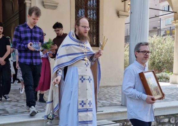 По благословению митрополита Волоколамского Антония для совершения пасхальной службы в городе Измире был направлен иеромонах Памфил (Осокин), насельник Свято-Троицкой Сергиевой Лавры. Богослужение было организовано при содействии председателя Русского общества имени Солженицына в Измире А.В. Пономарева.