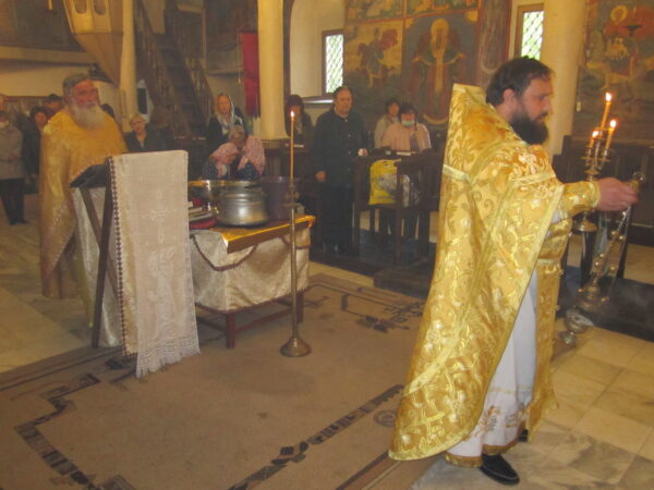 Църковната служба бе водена от ставрофорен иконом Пламен Димитров и свещеник Емануил Димитров, които в нейния край отслужиха и празничен водосвет.
