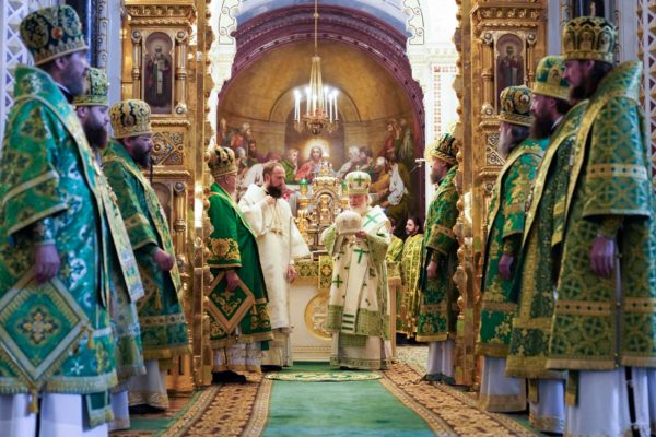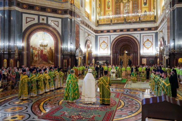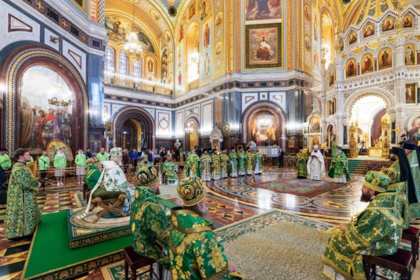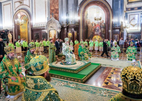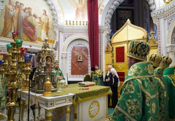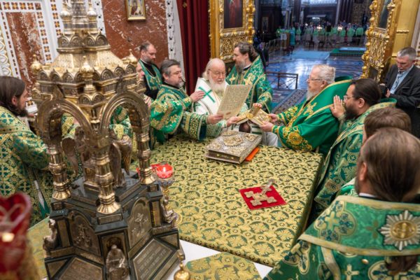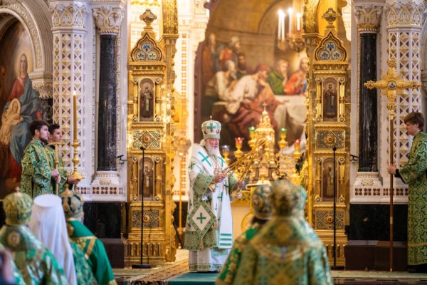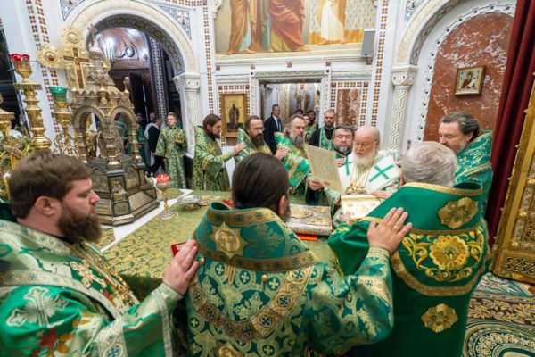 На сугубой ектении были вознесены особые прошения, Предстоятель Русской Православной Церкви прочитал молитву о Святой Руси.