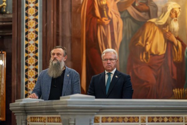 Патриаршее богослужение посетили: член Совета Федерации Федерального Собрания Российской Федерации от Красноярского края А.В. Усс, заместитель главы Всемирного русского народного собора С.Ю. Рудов.