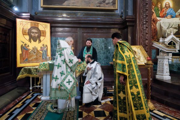 За Литургией Святейший Владыка рукоположил диакона Александра Николаева, клирика храма пророка Божия Илии в Черкизове г. Москвы, в сан пресвитера.