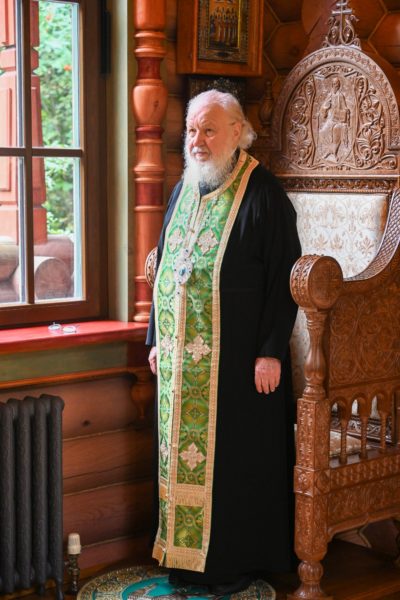 1 августа 2025 года, в праздник обретения мощей преподобного Серафима Саровского, чудотворца (1903), Святейший Патриарх Московский и всея Руси Кирилл молился за Божественной литургией в храме благоверного князя Александра Невского в одноименном скиту близ Переделкина.