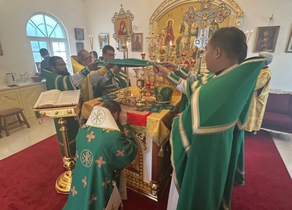 В завершение праздничного богослужения архипастырь удостоил права ношения набедренника иерея Владимира Воруми, клирика храма святителя Николая Мирликийского в г. Джаяпура (Западное Папуа, Индонезия).