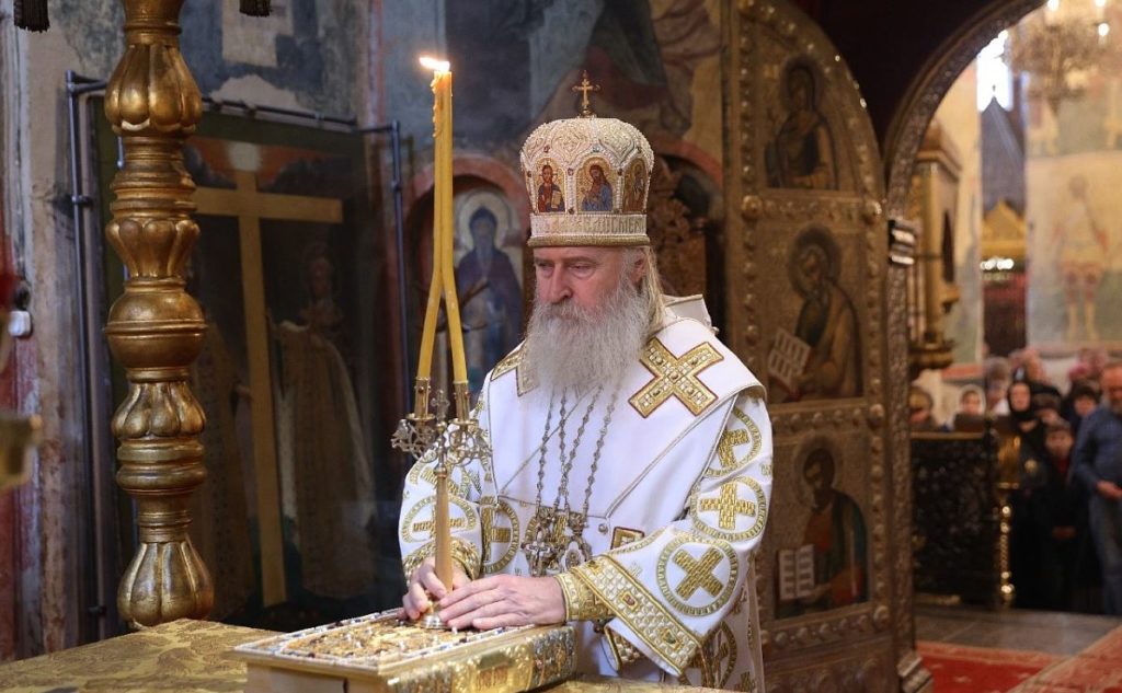 По окончании Литургии было совершено славление святителям Московским. Затем владыка Феогност поклонился честным мощам святителей Московских, почивающих в Успенском соборе.