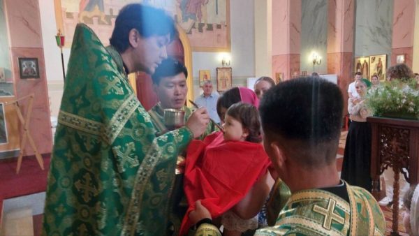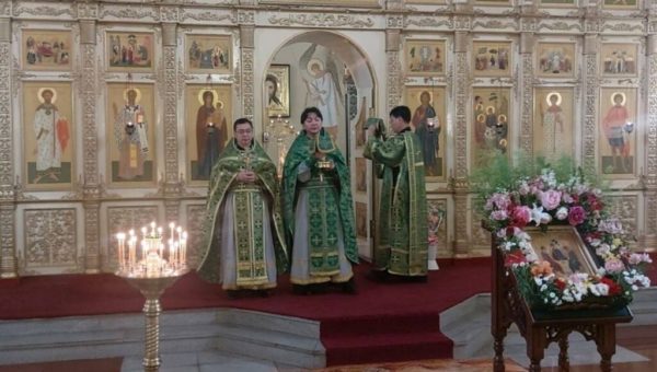 8 июня, в день Святой Троицы, престольный праздник храма Троицы Живоначальной г. Пхеньяна, Божественную литургию и Великую вечерню с чтением коленопреклоненных молитв в этом храме возглавил иерей Андрей Калчев в сослужении иерея Владимира Чана и диакона Павла Пака.