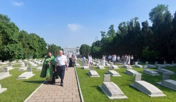 После завершения богослужения в храме делегация посетила Советское мемориальное кладбище в районе Садон, где была совершена панихида.