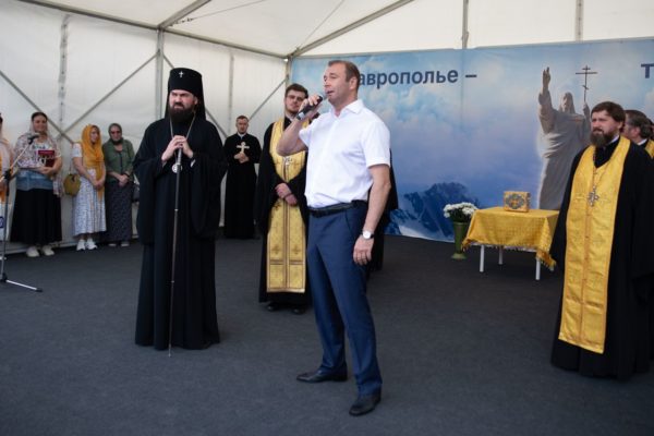 Молебен перед святыней и официальное открытие православной книжной выставки-форума «Радость Слова» и православной выставки-ярмарки «Благословенный Кавказ» возглавил архиепископ Пятигорский и Черкесский Феофилакт. Владыке сослужило духовенство Пятигорской епархии.