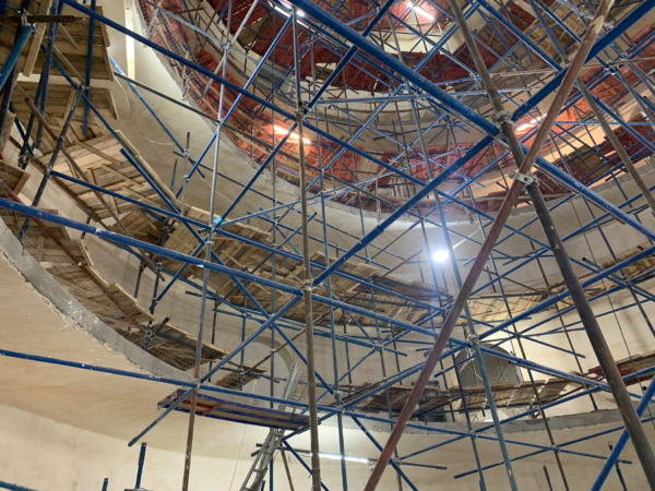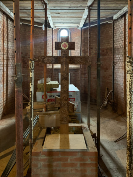 В рамках выездного совещания участники побывали также на приходе иконы Божией Матери «Неопалимая Купина» в Очаково-Матвеевском: на площадке полностью выполнен подземный этаж православного комплекса, возводится кирпичная кладка стен основного объема.