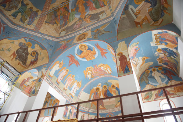 Итоги объезда подвели в новом храме преподобного Андрея Рублева в Раменках, который в настоящее время активно готовится к чину великого освящения: художники пишут иконы для иконостаса, подрядчики завершают работы по благоукрашению приходских помещений.