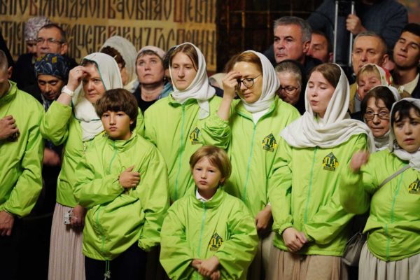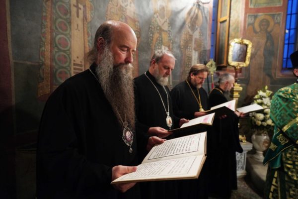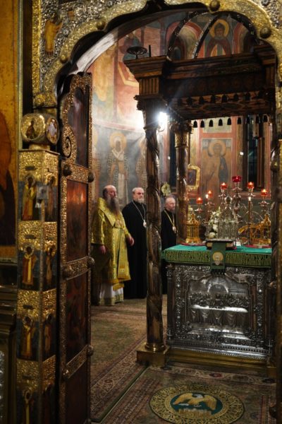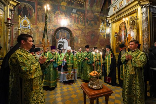 В соборе молились архиереи, настоятельницы женских монастырей, священнослужители, монашествующие и паломники, прибывшие на торжества в лавру.