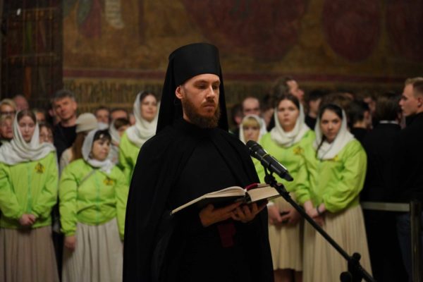 Богослужебные песнопения исполнил хор Троице-Сергиевой лавры под управлением иеромонаха Нестора (Волкова).
