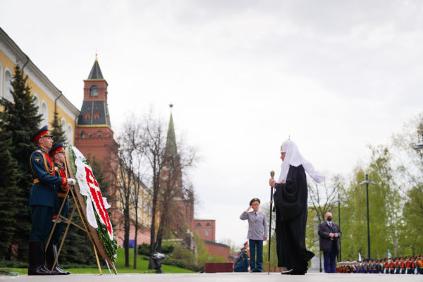 В канун Дня Победы Святейший Патриарх Кирилл возложил венок к могиле Неизвестного солдата у Кремлевской стены