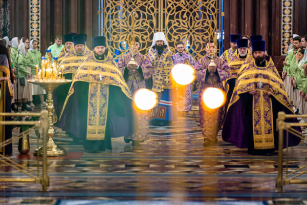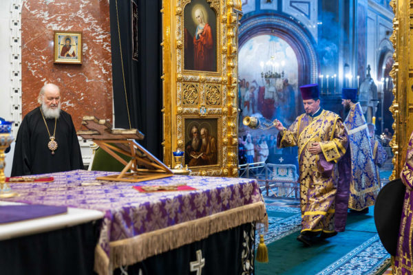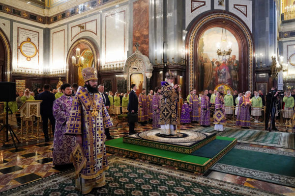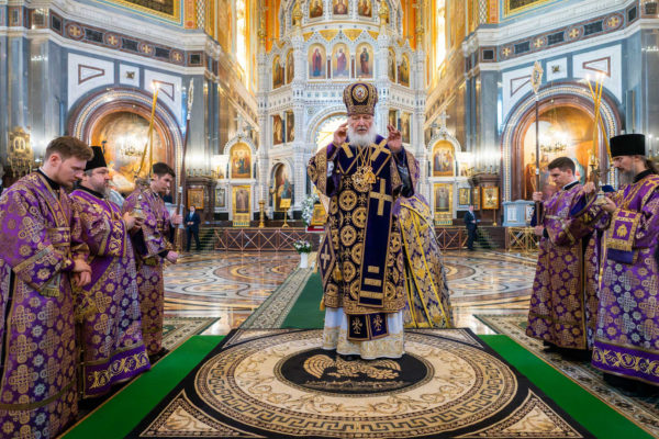 В канун праздника Благовещения Святейший Патриарх Кирилл совершил всенощное бдение в Храме Христа Спасителя