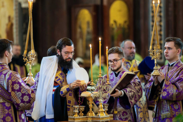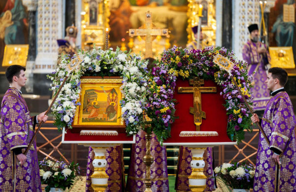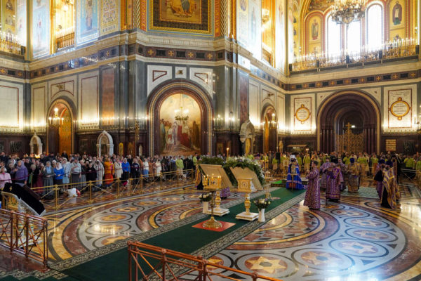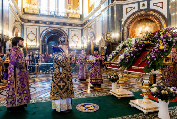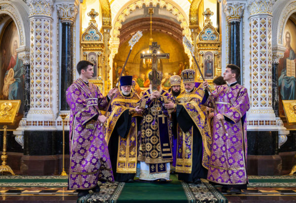 6 апреля 2024 года, в канун недели 3-й Великого поста, Крестопоклонной, праздника Благовещения Пресвятой Богородицы, дня преставления святителя Тихона, Патриарха Московского и всея России, Святейший Патриарх Московский и всея Руси Кирилл совершил всенощное бдение с чином выноса Честного и Животворящего Креста Господня в кафедральном соборном Храме Христа Спасителя в Москве.