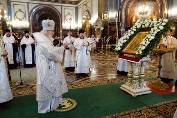 В канун праздника Вознесения Господня Святейший Патриарх Кирилл совершил всенощное бдение в Храме Христа Спасителя