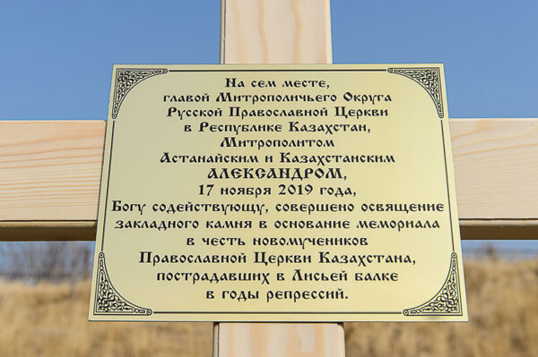 В Лисьей балке – месте страдальческой кончины тысяч православных христиан – освящен закладной камень в основание памятника новомученикам казахстанским