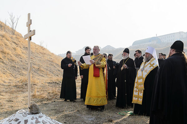 17 ноября 2019 года. Чимкент. Митрополит Астанайский и Казахстанский Александр совершил освящение креста и закладного камня в Лисьей балке – на месте создания памятника новомученикам Церкви Русской, принявшим здесь в годы безбожных гонений смерть за Христа.