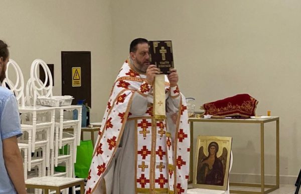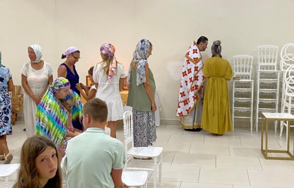 Богослужение совершалось в специально арендованном для этого помещении. Обращаясь к прихожанам со словом проповеди, священнослужитель передал им благословение епископа Сурожского Матфея и приветствие от исполняющего обязанности настоятеля прихода иерея Кирилла Чакона, несущего свое служение в мексиканской столице – городе Мехико.