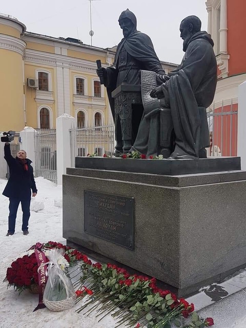 Посольство Греции в Москве совместно с ФНКА греков России и Московским обществом греков организовали в честь Международного Дня Греческого языкацеремонию возложения цветов к памятнику Братьям Лихудам в Москве (Богоявленский пер., д. 6, метро “Площадь Революции”). Иоанникий и Софроний Лихуды – греческие ученые, православные иеромонахи, основатели Московской Славяно-Греко-Латинской Академии – первого высшего учебного заведения в России.
