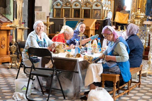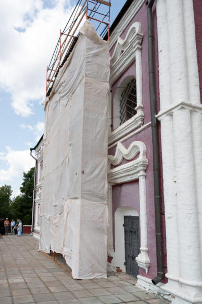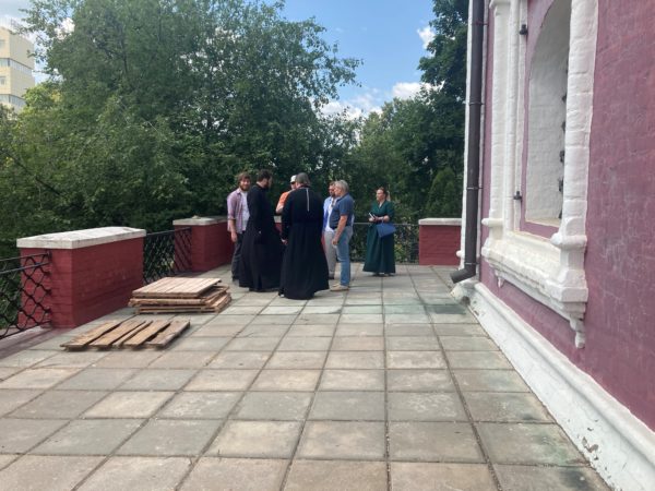 20 июня начальник Отдела реставрации и ремонта ФХУ игумен Серафим (Голованов) посетил храм вместе представителями Департамента культурного наследия, чтобы проконтролировать момент подготовки к началу работ.