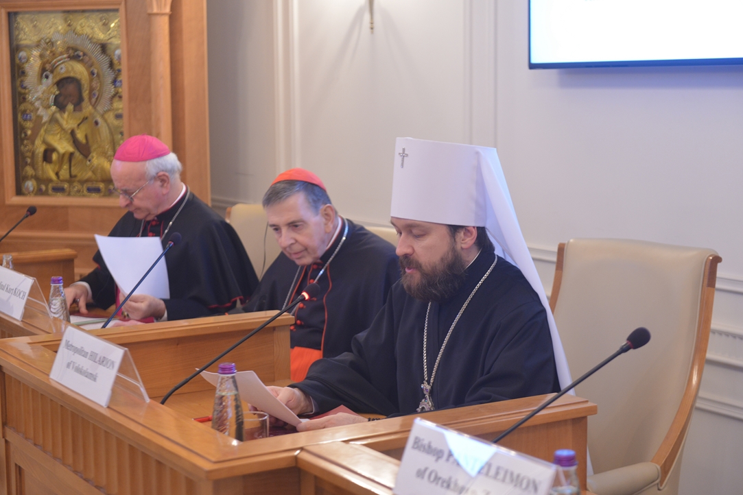 Открывая конференцию, председатель Отдела внешних церковных связей, ректор Общецерковной аспирантуры и докторантуры имени святых равноапостольных Кирилла и Мефодия митрополит Волоколамский Иларион констатировал, что состоявшаяся 12 февраля 2016 года в аэропорту города Гаваны первая в истории встреча Предстоятелей Русской Православной Церкви и Римско-Католической Церкви «стала результатом многолетнего диалога и, в свою очередь, определила перспективу развития наших двусторонних отношений на многие годы вперед».