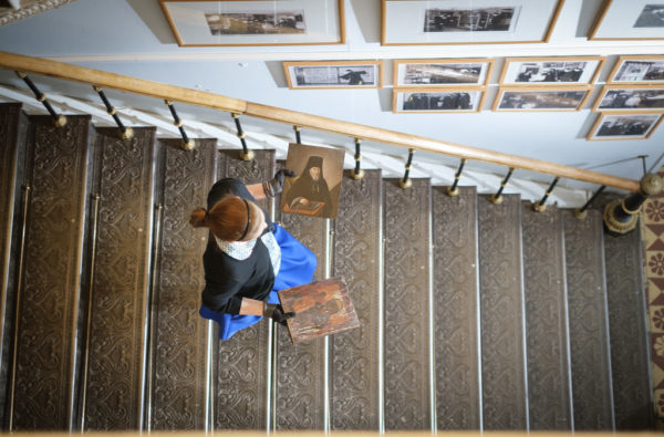 Художник-реставратор реставрационной мастерской Лавры Ольга Владимировна Петрова рассказала о своей работе по восстановлению настолпной иконы «Преподобных Сергия, Никона и Саввы» из Троицкого собора.