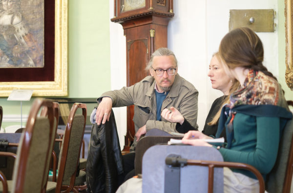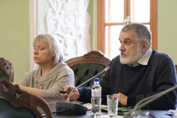 Архитектор Олег Евгеньевич Климов доложил о своих наблюдениях об уникальном художественном произведении — сени над ракой преподобного Сергия Радонежского, памятнике декоративного искусства 1730-х гг.