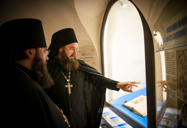 Традиционную красную ленточку перерезали епископ Иннокентий и игумен Гавриил. Затем наместник монастыря провел экскурсию по музею, ознакомив участников церемонии с древней историей обители.