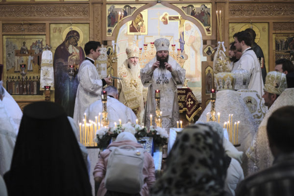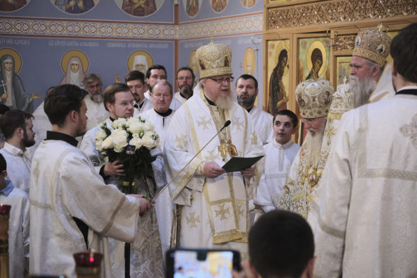 На литургии ключарь кафедрального собора протоиерей Николай Артемов был награжден правом служения Литургии с отверстыми Царскими вратами до Херувимской песни, сообщает сайт Зарубежной Церкви.
