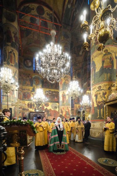 Затем Предстоятель Русской Церкви обратился к участникам богослужения с Первосвятительским словом.