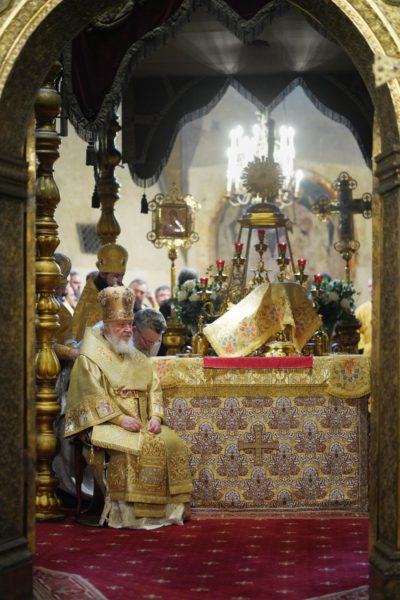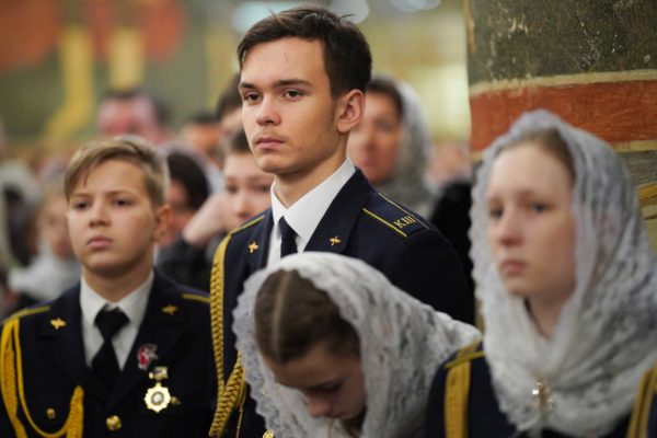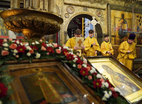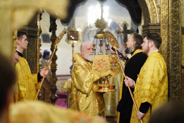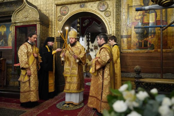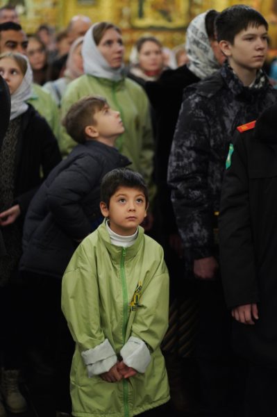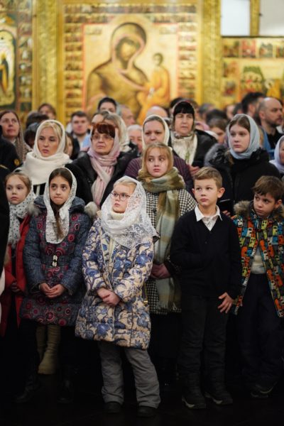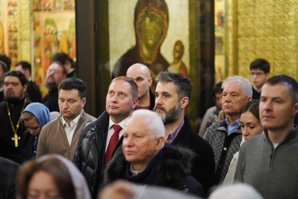 На сугубой ектении были вознесены особые прошения, Предстоятель прочитал молитву о Святой Руси.