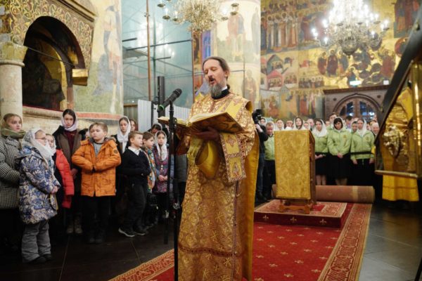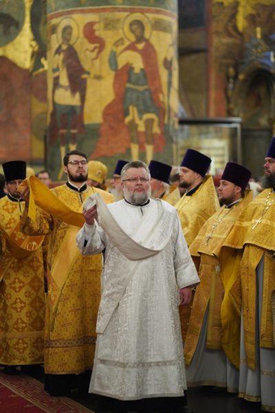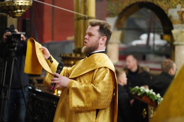 Проповедь перед причастием произнес иерей Георгий Харин, клирик кафедрального собора Святой Троицы города Подольска Московской области, доцент кафедры теологии Московского педагогического государственного университета.