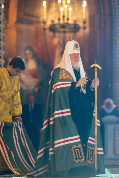 На сугубой ектении были вознесены особые прошения, Предстоятель Русской Церкви прочитал молитву о Святой Руси.