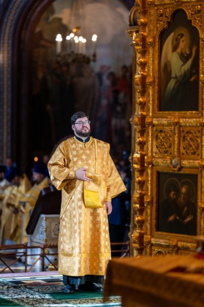 Проповедь перед причастием произнес иерей Даниил Торопов, клирик храма Воскресения Словущего в Даниловской Слободе г. Москвы.