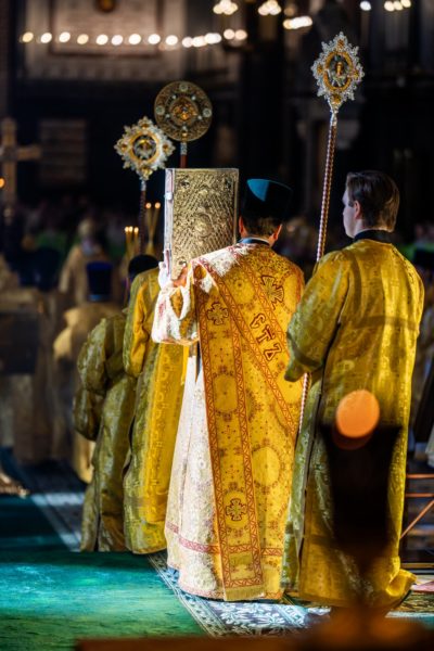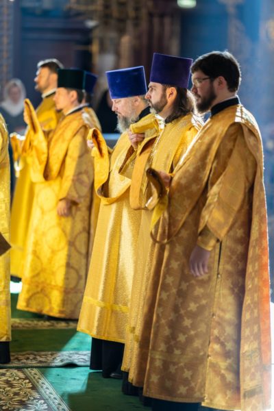 Богослужебные песнопения исполнил Патриарший хор Храма Христа Спасителя (регент — И.Б. Толкачев).