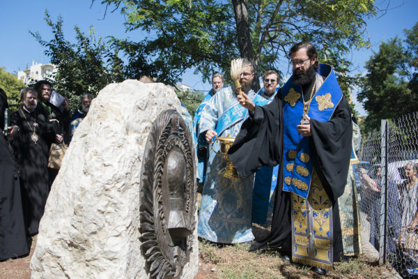 После приветственного слова настоятеля собора протоиерея Андрея Елисеева и традиционного многолетия Святейшему Патриарху Кириллу, владыке-юбиляру и всему освященному собору архипастыри, священнослужители и прихожане под пение тропаря Успения Пресвятой Богородицы проследовали на прилегающую к собору территорию (перекресток бульвара Царевич и авеню Николая Второго), где митрополит Волоколамский Антоний освятил барельеф с изображением царя-страстотерпца Николая.