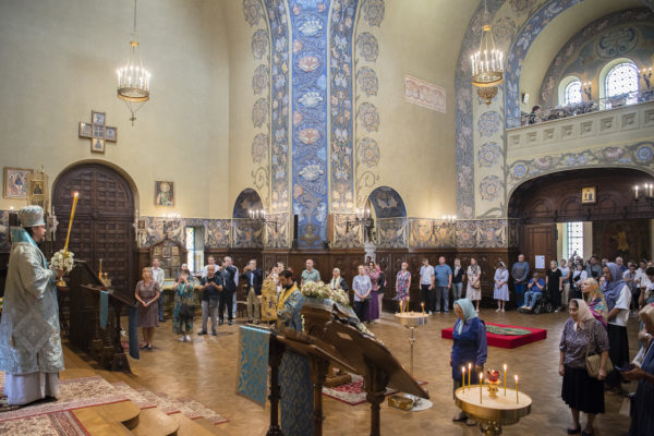 Евангельское зачало было прочитано на французском и церковнославянском языках.