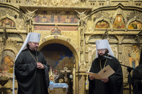 По окончании богослужения председатель Отдела внешних церковных связей тепло приветствовал Патриаршего экзарха Западной Европы, поздравив владыку Нестора с 50-летием и 14-й годовщиной архиерейской хиротонии. Митрополит Антоний огласил поздравительный адрес Святейшего Патриарха Московского и всея Руси Кирилла, а также, исполняя Патриаршее благословение, вручил митрополиту Нестору орден преподобного Сергия Радонежского (II степени).