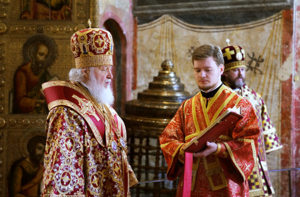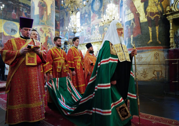 В понедельник Светлой седмицы Святейший Патриарх Кирилл совершил Литургию в Успенском соборе Московского Кремля