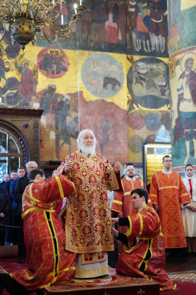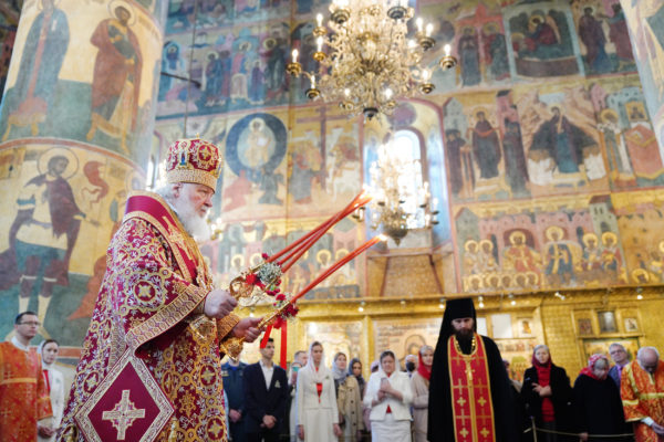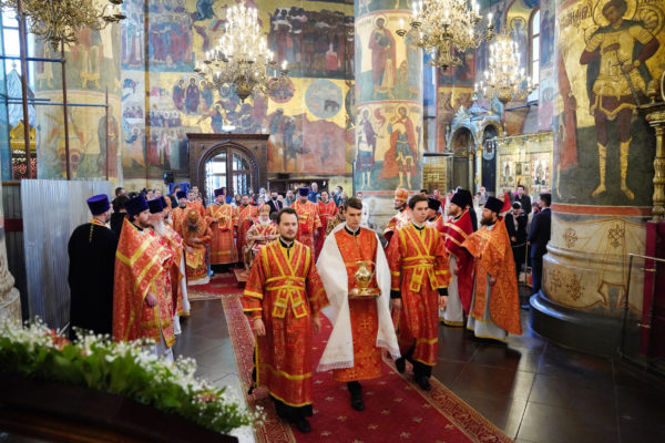 25 апреля 2022 года, в понедельник Светлой седмицы, Святейший Патриарх Московский и всея Руси Кирилл совершил Божественную литургию в Патриаршем Успенском соборе Московского Кремля.