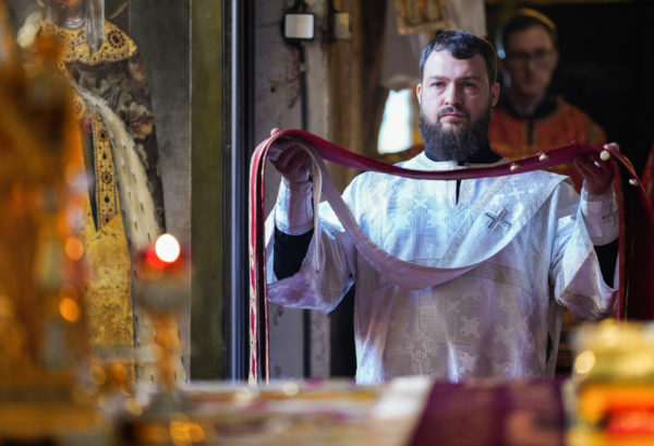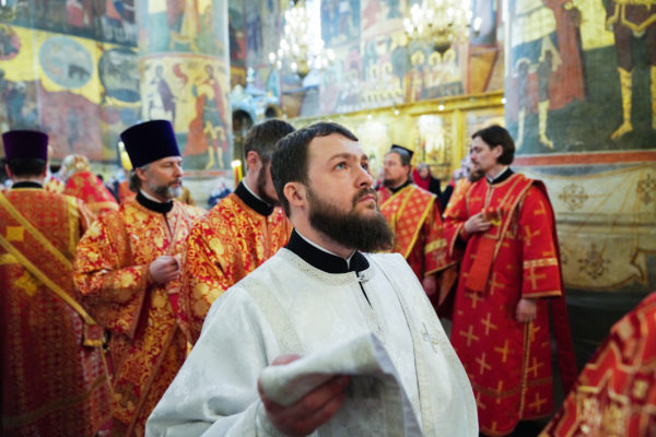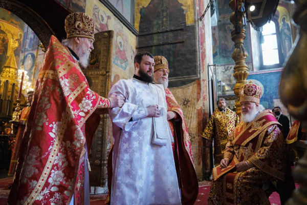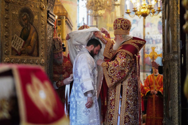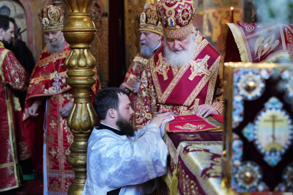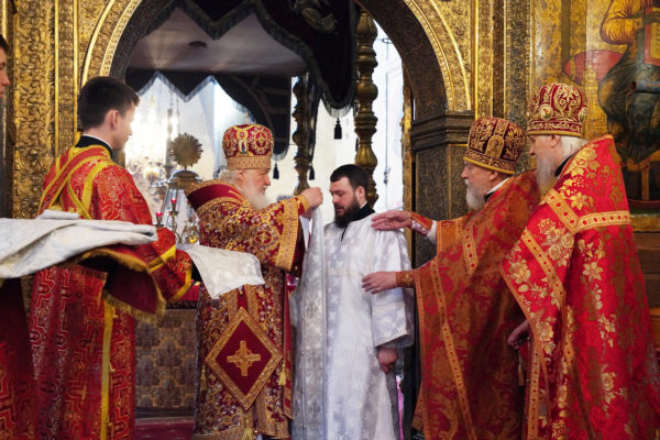 За Литургией Святейший Патриарх Кирилл рукоположил диакона Димитрия Горбика, клирика храма Живоначальной Троицы в Усадьбе Свиблово г. Москвы, в сан пресвитера.