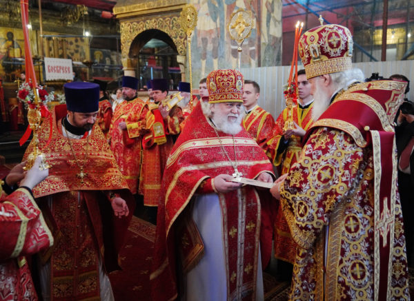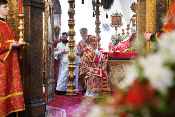 В завершение Святейший Владыка поздравил сослужащее духовенство и хор с праздником Пасхи.