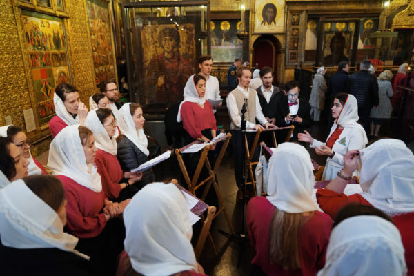 Богослужебные песнопения исполнил хор молодежного движения «Патриаршие добровольцы» под управлением А.Ю. Голик.