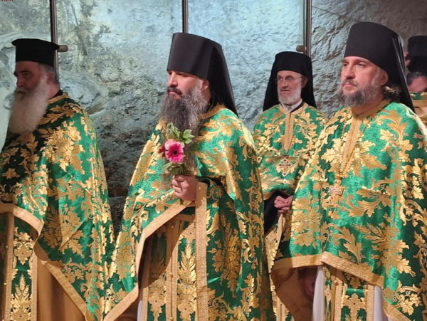 Его Блаженству также сослужили: представитель Румынской Православной Церкви архимандрит Иоанн, благочинный Соловецкого монастыря архимандрит Ианнуарий (Недачин) и паломники из Сербии в священном сане.