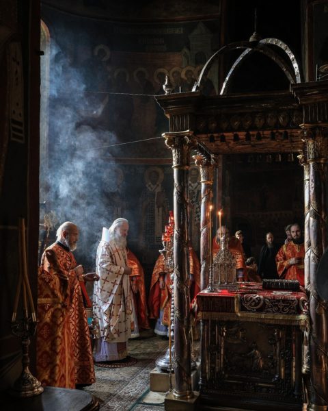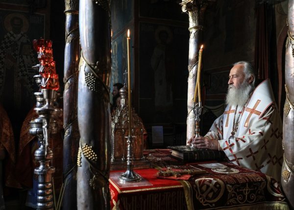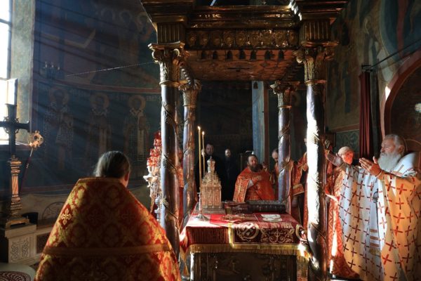 В праздник Преполовения Пятидесятницы председатель Синодального отдела по монастырям и монашеству совершил Литургию в Троицком соборе Троице-Сергиевой лавры