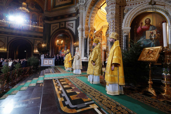 В праздник Рождества Христова Предстоятель Русской Церкви совершил Божественную литургию в Храме Христа Спасителя