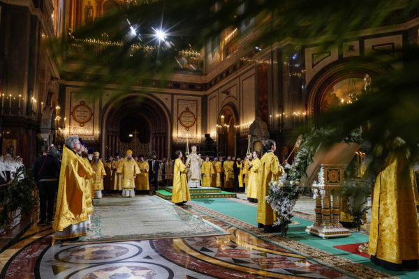 В ночь с 6 на 7 января, в праздник Рождества Господа Бога и Спаса нашего Иисуса Христа, Святейший Патриарх Московский и всея Руси Кирилл совершил в кафедральном соборном Храме Христа Спасителя в Москве череду рождественских богослужений – великое повечерие, утреню и Божественную литургию святителя Иоанна Златоуста.