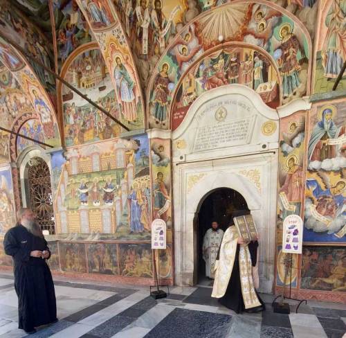 Днес в Рилския манастир беше осветено копието на чудотворната икона на Божията майка „Осеновица“, която се намира в светата обител. Копието е изработено от курсистите от школата по иконопис за възрастни към Енорийския център на столичния храм „Покров Богородичен“. В края на тази учебна година иконата с размери 140/100 беше напълно завършена и представена на традиционната изложба в Енорийския център на 3 юли.