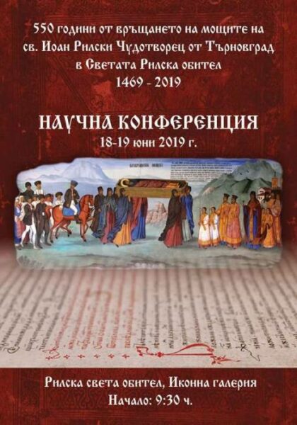 На 18 и 19 юни в Рилската св. обител ще се проведе научна конференция по случай 550 години от връщането на мощите на преп. Йоан Рилски от Търново в Рилския манастир.